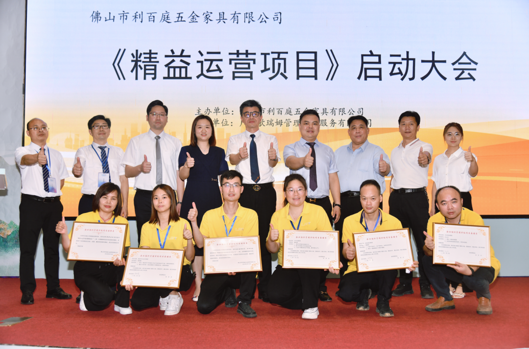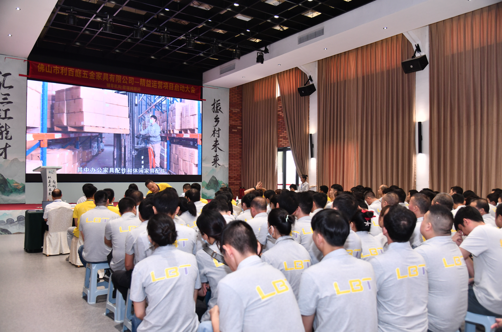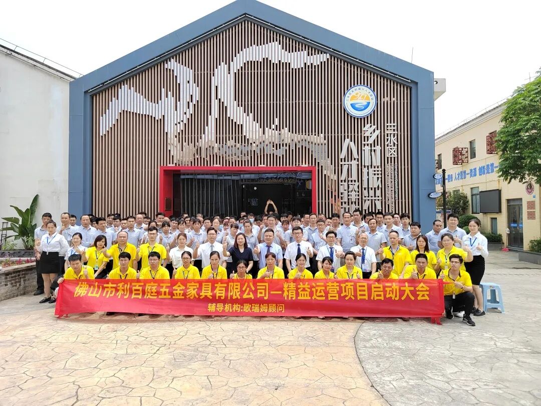 2023年5月18日上午,佛山市利百庭五金家具有限公司《精益运营项目》启动大会在佛山市三水区白坭创意粮仓人才中心会议室隆重召开。白坭镇总工会副主席李英全、白坭镇周村村党委书记邓世元、公司总经理周成江、副总经理孔颖斯、工会主席孔维彬、工会副主席何嘉华、公司成员以及广东歌瑞姆管理技术服务有限公司总经理后小进、项目经理胡显俊、高级咨询师万银华、项目助理梁炜文出席了本次启动大会。