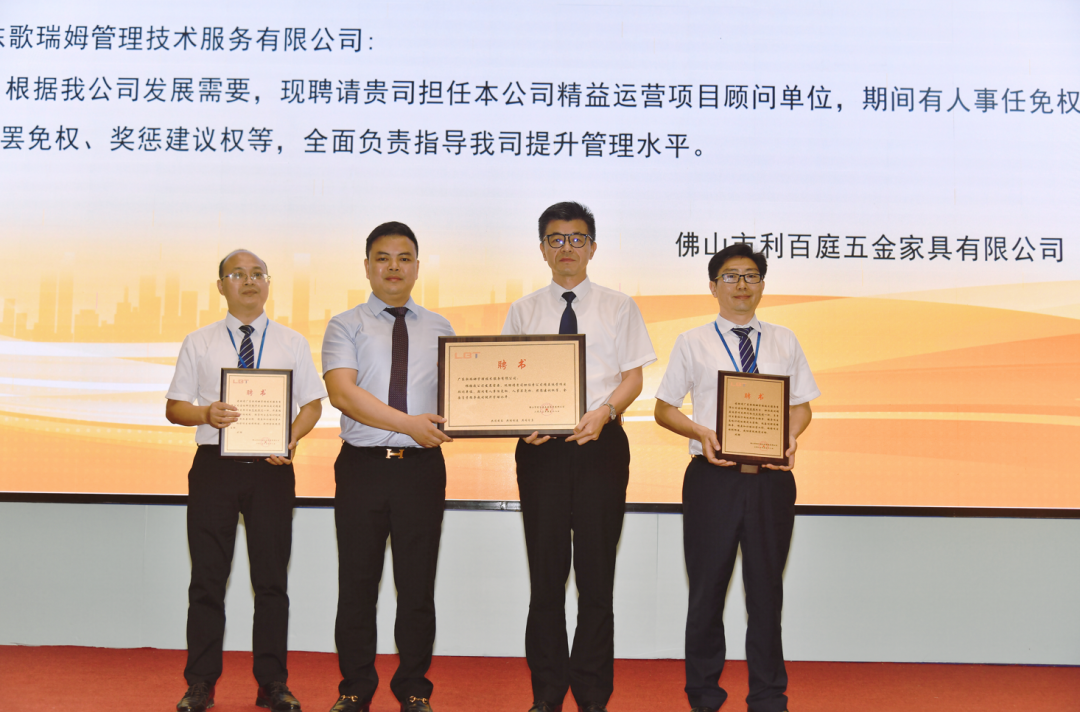 广东歌瑞姆管理技术服务有限公司总经理后小进先生表示,我们用三年的时间,不但要帮助利百庭把精益运营项目推动好,达到我们预期的目标,而且要形成我们利百庭特色的精益运营体系,要形成闭环。最重要的一点是造物先造人,我们在帮助你们建立形成经济运营体系的同时,也希望把你们在座的所有管理干部要培养出来。